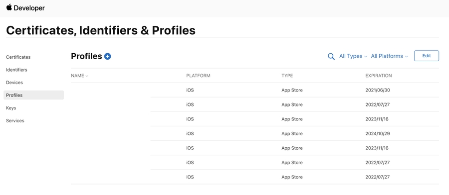Add a New Profile: Click “Add (+)” and select the type of provisioning profile you need (e.g., iOS App Development).